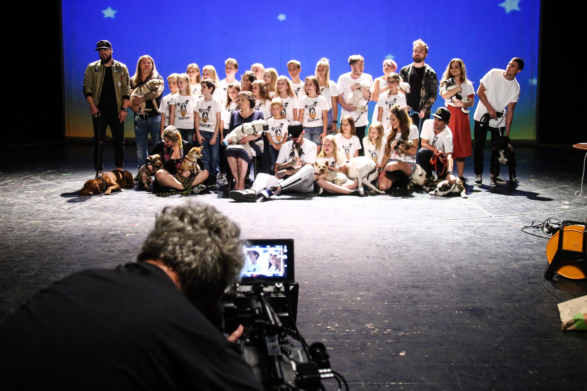 Dne 30. 8. jsme se my, Čtyřlístkoví (hafani i lidé) zúčastnili natáčení klipu Protože to nevzdávám, který proběhl v Praze. Zážitek pro nás lidi to byl neskutečný, protože jsme měli tu čest konečně poznat všechny, kteří se zapojili do projektu Gump (i samotného Gumpa osobně). Také jsme se mohli podívat do zákulisí natáčení a naši hafani se dokonce i natáčení zúčastnili. 🙂 (Hvězdy: Kelly, Rozárka, Jean a Loko). JEAN se samozřejmě musel nesmazatelně zapsat do paměti všech zúčastněných originálním způsobem. Začal čůrat přímo při natáčení videoklipu. zpěvák, kterému čůral na nohu, ani nehnul brvou a zpíval dál. Jenže Jean je Jean a nečůrá malé loužičky ale řádné louže. A tak čůral a čůral, louže se rozlévala dál a dál po jevišti karlínského divadla, zpěváci i ostatní přihlížející se statečně snažili dělat jako že nic,ale po očku s napětím sledovali louži, která samozřejmě mířila právě do míst, kde zpěváci seděli na zemi….:-) Samozřejmě že všichni, co odcházeli z natáčení s mokrým zadkem, se dušovali,že na JEANA nikdy nezapomenou…:-) 🙂